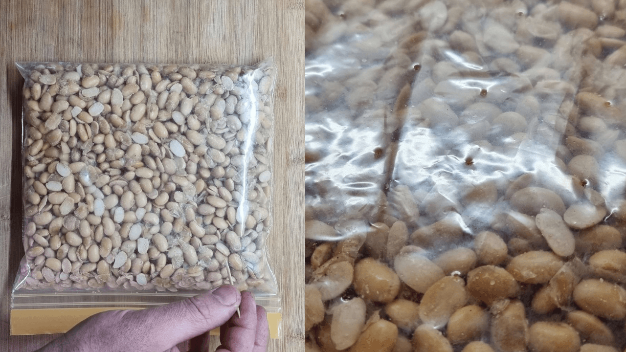 Anche se la decorticazione aiuta a ottenere una crescita più uniforme del micelio, non è necessario eliminare le bucce. Anzi, puoi tranquillamente mantenerle nel composto. L’importante è che si separino dal legume, non che spariscano del tutto. Tenerle può essere utile anche per non perdere fibra e per dare maggiore struttura al panetto.