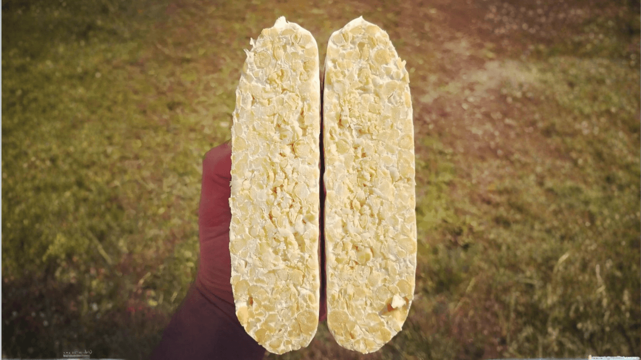 Il tempeh è un alimento tradizionale indonesiano ottenuto facendo proliferare un fungo filamentoso, in genere Rhizopus oligosporus, su legumi cotti e correttamente preparati. Durante questo processo, il micelio del fungo avvolge i legumi e li lega in una struttura compatta, trasformandoli in un panetto dal profumo caratteristico e dalla consistenza soda.